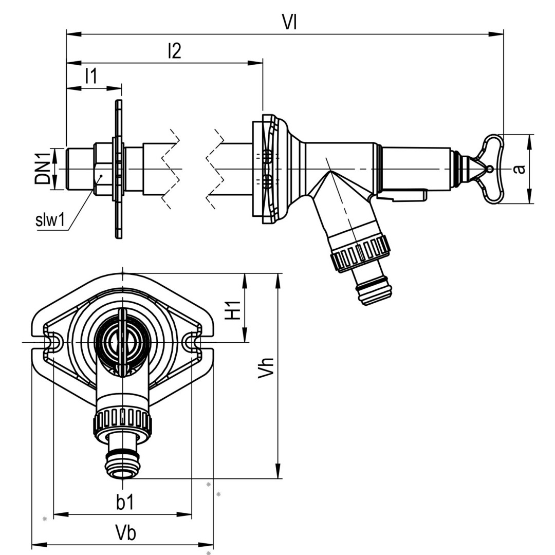 AIPS Außenwandventil SEPP Eis Basis-8031.20 DN 15, frostsicher, Steckschlüssel/Kronengriff, Messing verchromt
