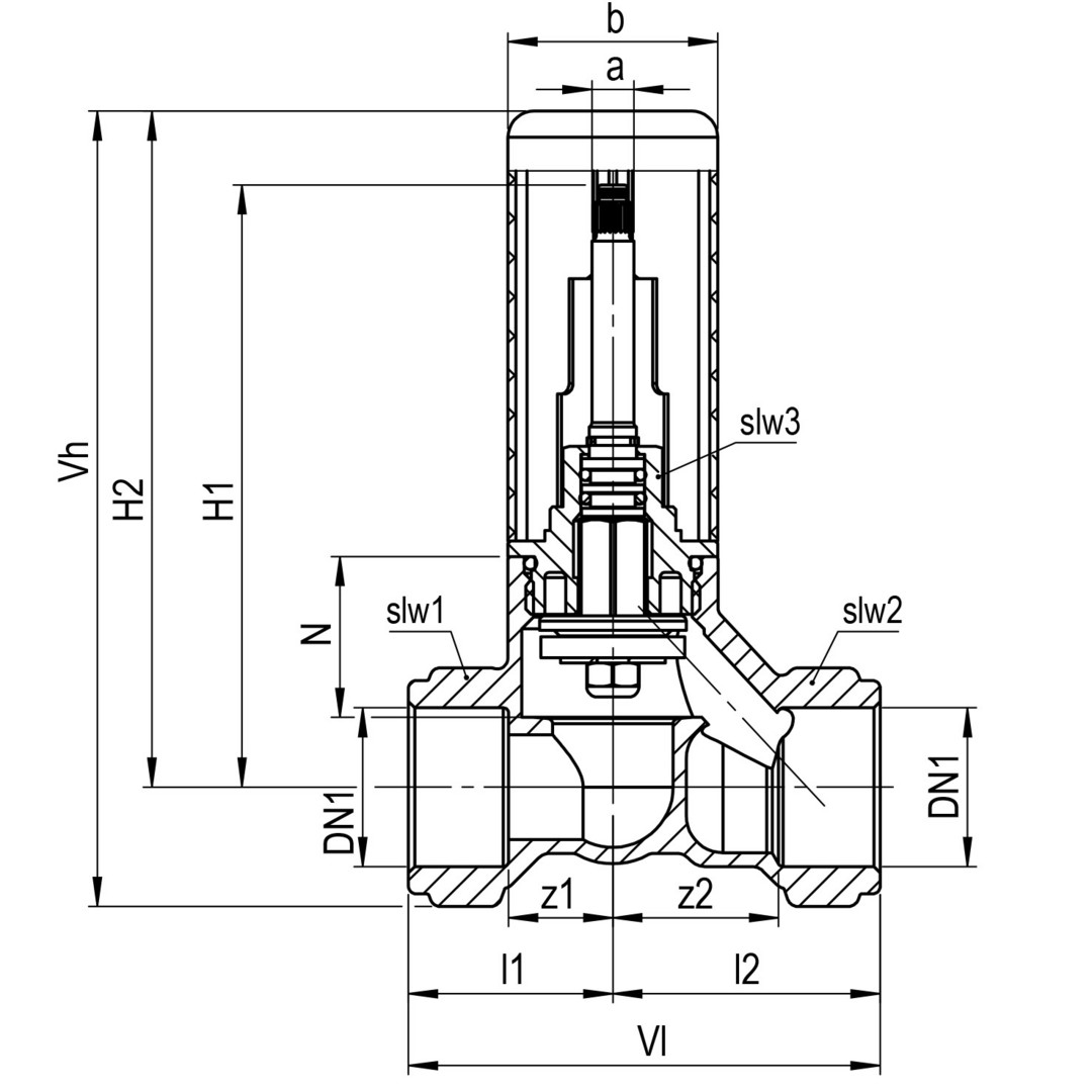 AIPS Geradsitzventil SEPP UP 2701.01 DN 15, Messing, IG, ohne Chromteile, lange Spindel SF0026289
