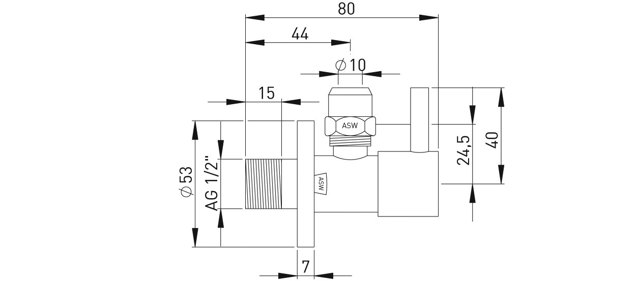 ASW Design-Eckventil 1/2" x 10 mm, Messing verchromt, runde Bauform
