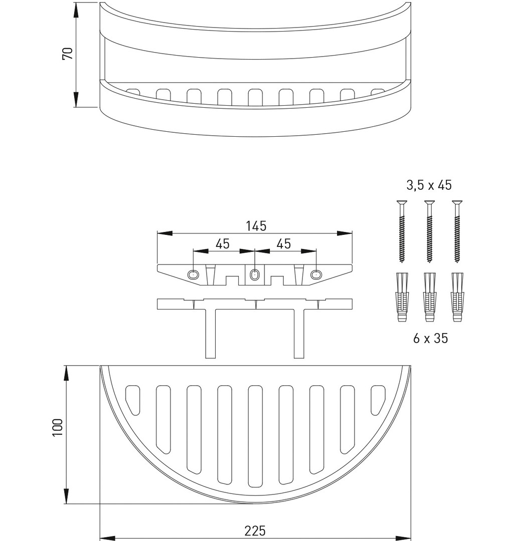 ASW Schwammkorb matt weiß, geschlossen, 225x100mm, halbrund, komplett mit Befestigung