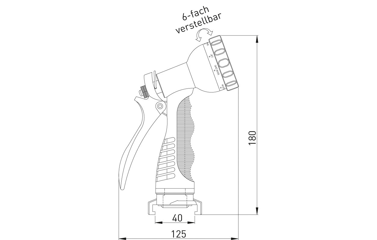 ASW Spritzdüse schwere Ausführung, 6-fach verstellbar, für Schnellverschluss
