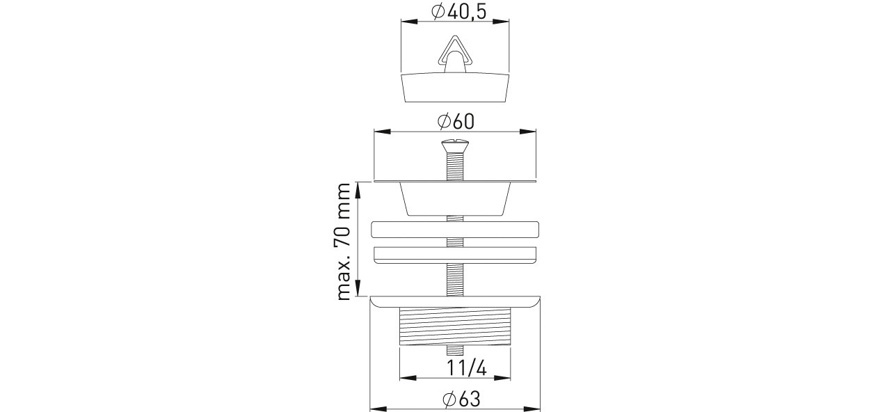 ASW Universalventil 1 1/4" x 60 mm, Schraube 80mm, Unterteil Kunststoff, Sieb poliert