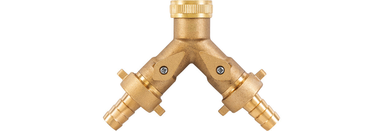 ASW Zweiwege-Verteilerstück Messing roh, IG 3/4" auf 2 Schlauchanschlüsse 1/2"