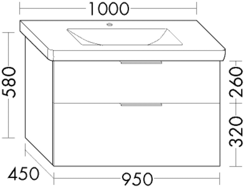 Schublade oben, mit Siphonausschnitt, Auszug unten