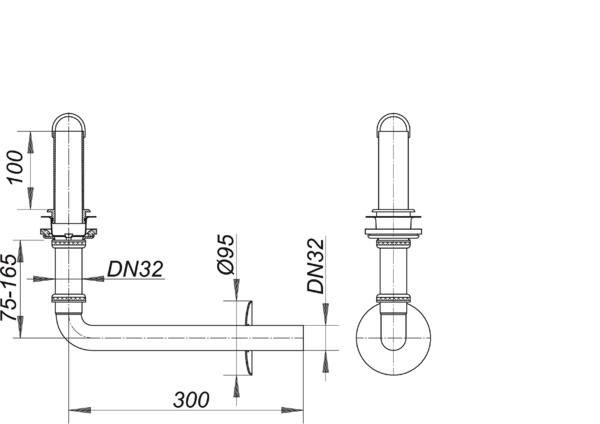passend zu den Wandeinbau-Siphons 300, 300 PC und 310, mit höhenverstellbarem Tauchrohr, Anschlussbogen 320 und 320 PC CR mit Edelstahl-Abdeckrosette Ø 95 mm, Anschlussbogen 321 mit ABS-Abdeckrosette Ø 95 mm