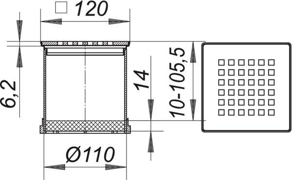 Dallmer Aufsatz Quadra S 10/120 Serie 10 120 x 120 mm, Edelstahl, Design-Rost, massiv 5mm