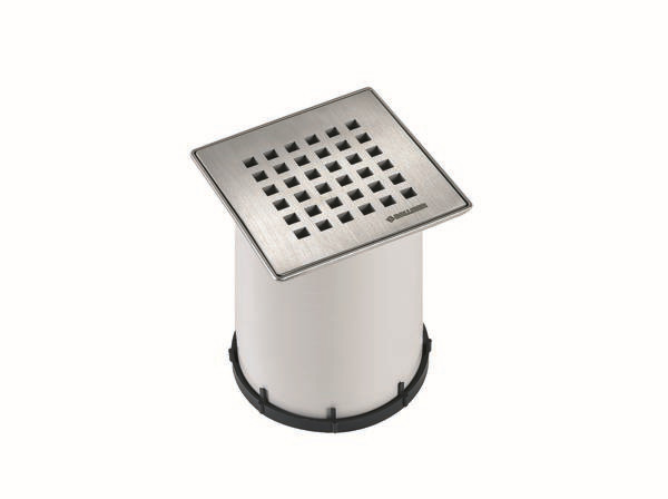 passend zu den Ablaufgehäusen 40, 42 und 46, den Balkonablaufgehäusen und Entwässerungselementen für Attikaabläufe, sowie zu den Aufstockelementen 85, Aufsatzverlängerung ABS, verlängerbar mit HT-Rohr DN 100, Rahmen Edelstahl 1.4301, Design-Rost Edelstahl 1.4404, 115 x 115 mm, Belastungsklasse L 15 (1,5 t)