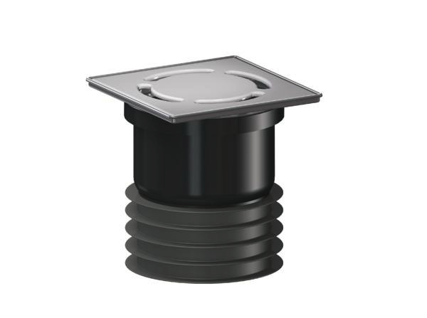 zum Einstecken in ein Rohr DN 100, einsetzbar bei nicht abgedichteten Bodenkonstruktion, herausnehmbarer Primus-Siphoneinsatz mit Sperrwasservorlage und mechanisch wirkender Sperre, Universal-Lippendichtung, Stutzen aus Polypropylen, hochschlagfest, mit angeformter Lippendichtung aus TPE, Rahmen Edelstahl 1.4301, 120 x 120 mm, Rost Edelstahl 1.4301, 115 x 115 mm, Belastungsklasse K 3 (300 kg)