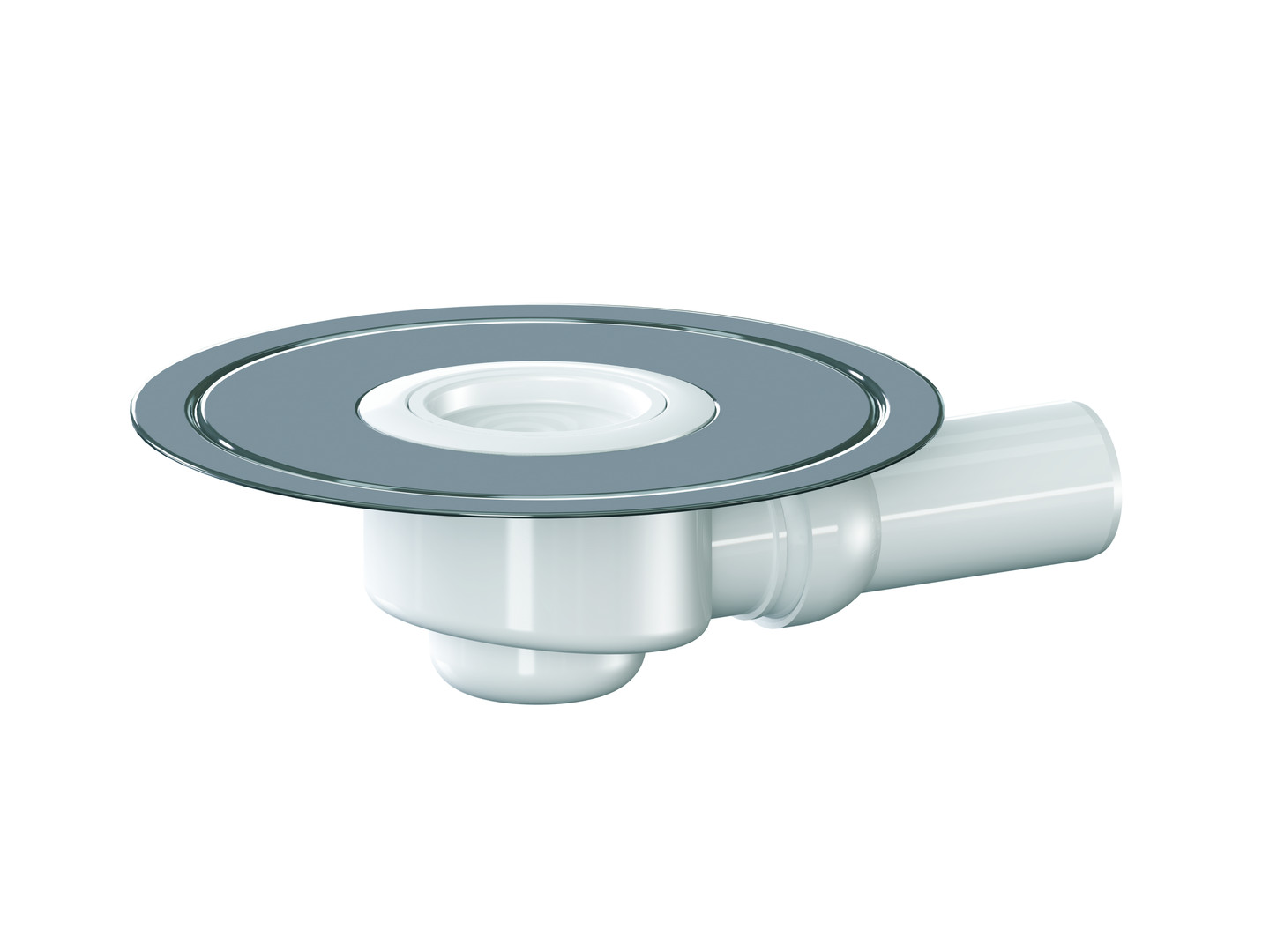 mit Kugelgelenk, verstellbar von 0-15°, Montage- und Verstärkungsblech aus Edelstahl 1.4404, Geruchsverschluss zur Reinigung komplett herausnehmbar, Sperrwasserhöhe 50 mm (gem. DIN EN 274), Bauschutzdeckel/Montageschlüssel, Polypropylen