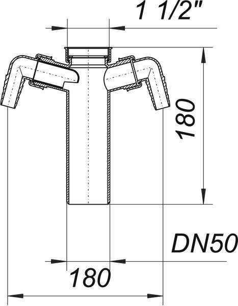 Dallmer Tauchrohr 010/2 180 mm, 1 1/2" x DN 50, 2 Waschgeräte-Anschlüsse DA080226