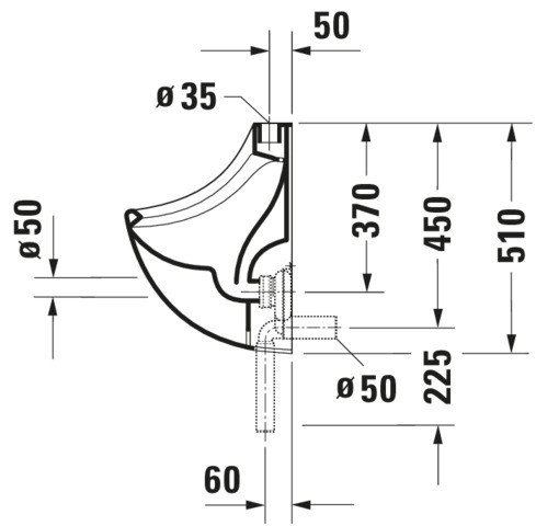 Duravit Absaug-Urinal Jim 36x35,5cm, Zulauf von oben, weiß