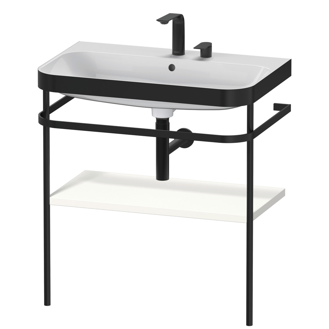 Duravit Möbelwaschtisch-Kombination Happy D.2 Plus 77,5 x 49 cm, 2 Hahnlöcher, weiß supermatt, mit Metallkonsole