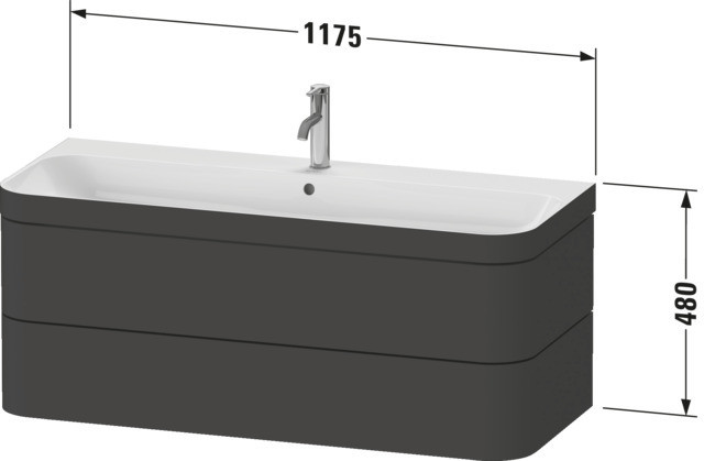 Höhe 48 cm, c-bonded, mit Unterbau, wandhängend, oberer Schubkasten mit Siphonausschnitt und Schürze, mit Möbelwaschtisch Happy D.2 Plus, mit Überlauf und Hahnlochbank, Push-Open Ventil mit keramischer Ventilabdeckhaube und Raumsparsiphon