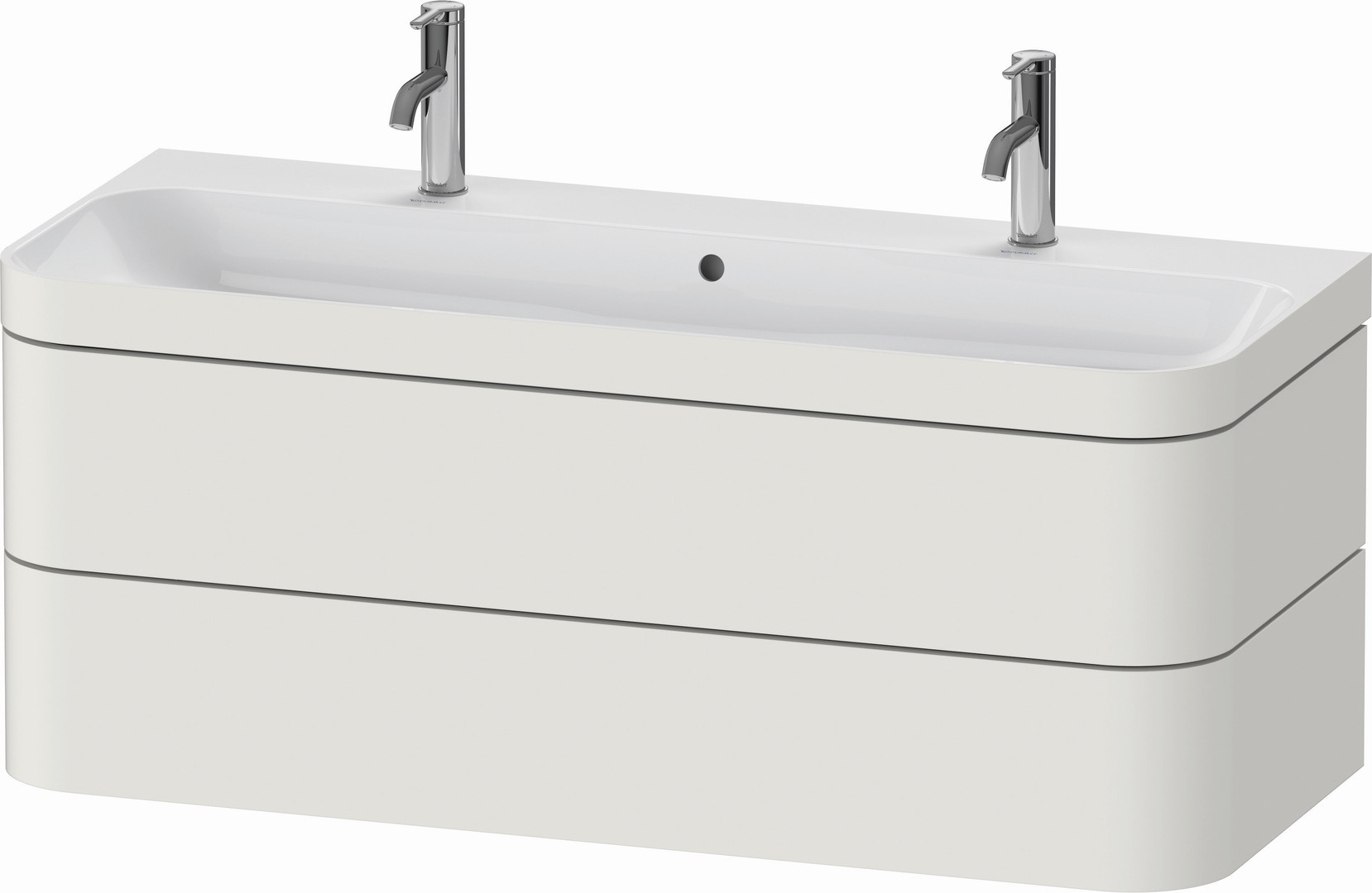 Duravit Möbelwaschtisch-Unterschrank Happy D.2 Plus 117,5x49cm, mit 1 Hahnloch, 2 Schubkästen, nordic weiß seidenmatt