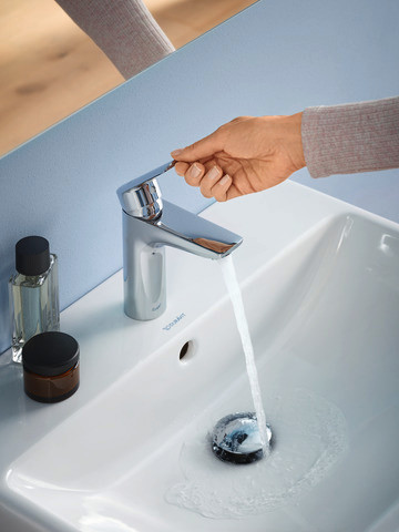 Duravit Waschtisch-Einhebelmischer No. 1 M MinusFlow mit Zugstangen-Ablaufgarnitur, Ausladung 106mm, chrom DUN11022001010