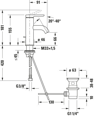 Duravit Waschtisch-Einhebelmischer S FreshStart und MinusFlow C.1 Ausladung 91mm, mit Zugstangen-Ablaufgarnitur, chrom DUC11013001010