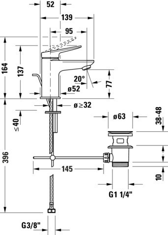 Duravit Waschtisch-Einhebelmischer S MinusFlow Wave Ausladung 95mm, mit Zugstangen-Ablaufgarnitur, chrom