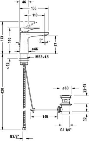 Duravit Waschtisch-Einhebelmischer Tulum S FreshStart Ausladung 110mm, mit Zugstangen-Ablaufgarnitur, chrom DUTU1011001010