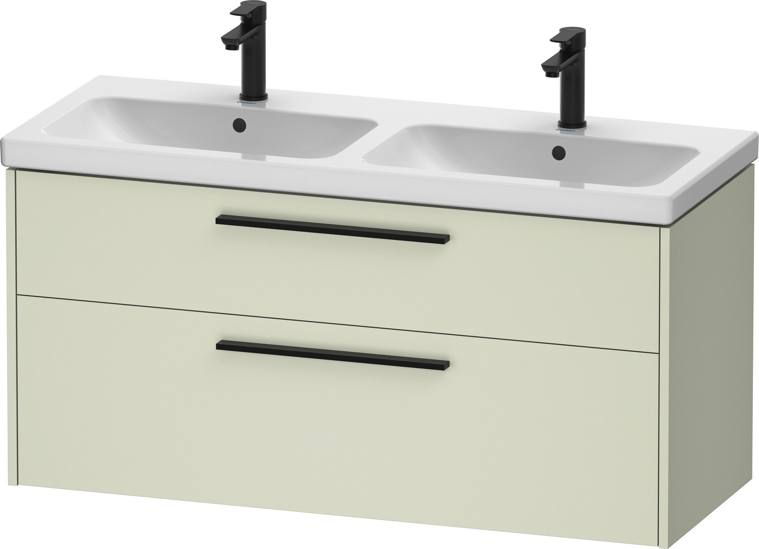 Duravit Waschtisch-Unterschrank D-Code 118,4 x 55,5 x 46 cm, 2 Schubkästen, Schürze, Blassgrün Matt, Griff diamantschwarz