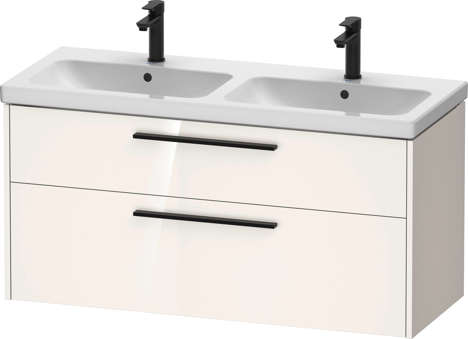 Duravit Waschtisch-Unterschrank D-Code 118,4 x 55,5 x 46 cm, 2 Schubkästen, Schürze, Weiß Hochglanz, Griff diamantschwarz