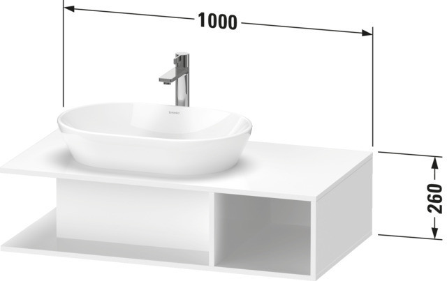 Höhe 26 cm, 1 offenes Fach seitlich rechts, 1 Konsolenplatte mit einem Ausschnitt, nur mit Raumsparsiphon montierbar