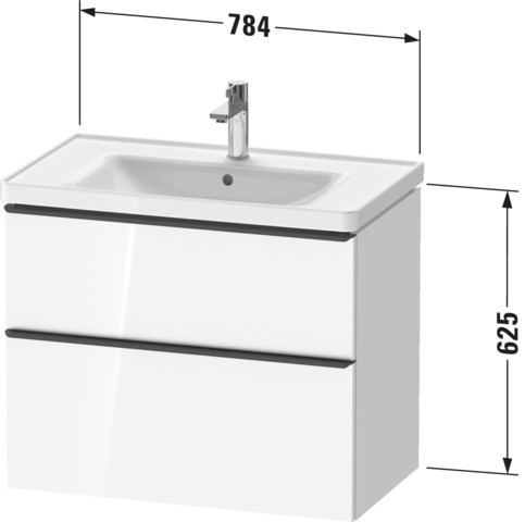 wandhängend, Höhe 62,5 cm, oberer Schubkasten mit Siphonausschnitt und Schürze, für D-Neo Waschtische 236765/236780/236710