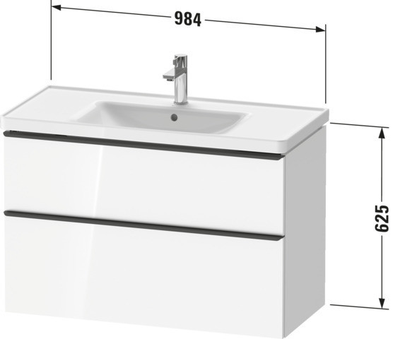 wandhängend, Höhe 62,5 cm, oberer Schubkasten mit Siphonausschnitt und Schürze, für D-Neo Waschtische 236765/236780/236710