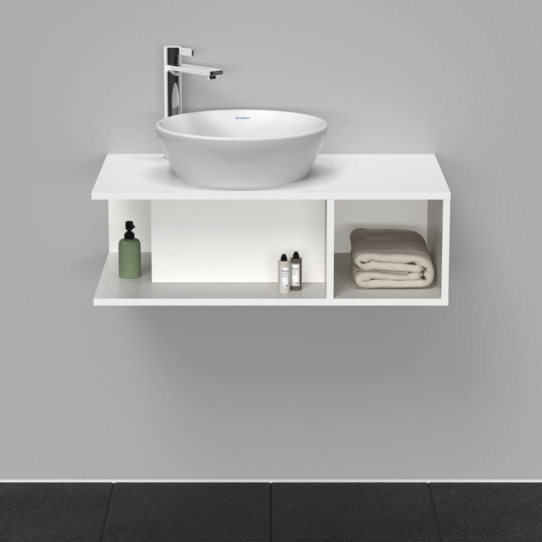 Höhe 26 cm, 1 offenes Fach seitlich rechts, 1 Konsolenplatte mit einem Ausschnitt, nur mit Raumsparsiphon montierbar