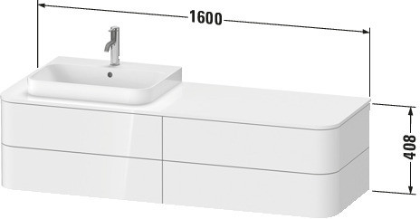 Duravit Waschtisch-Unterschrank Happy D.2 Plus 160x55cm, für Konsole, 4 Schubkästen, für Aufsatzbecken, rechts, weiß seidenmatt