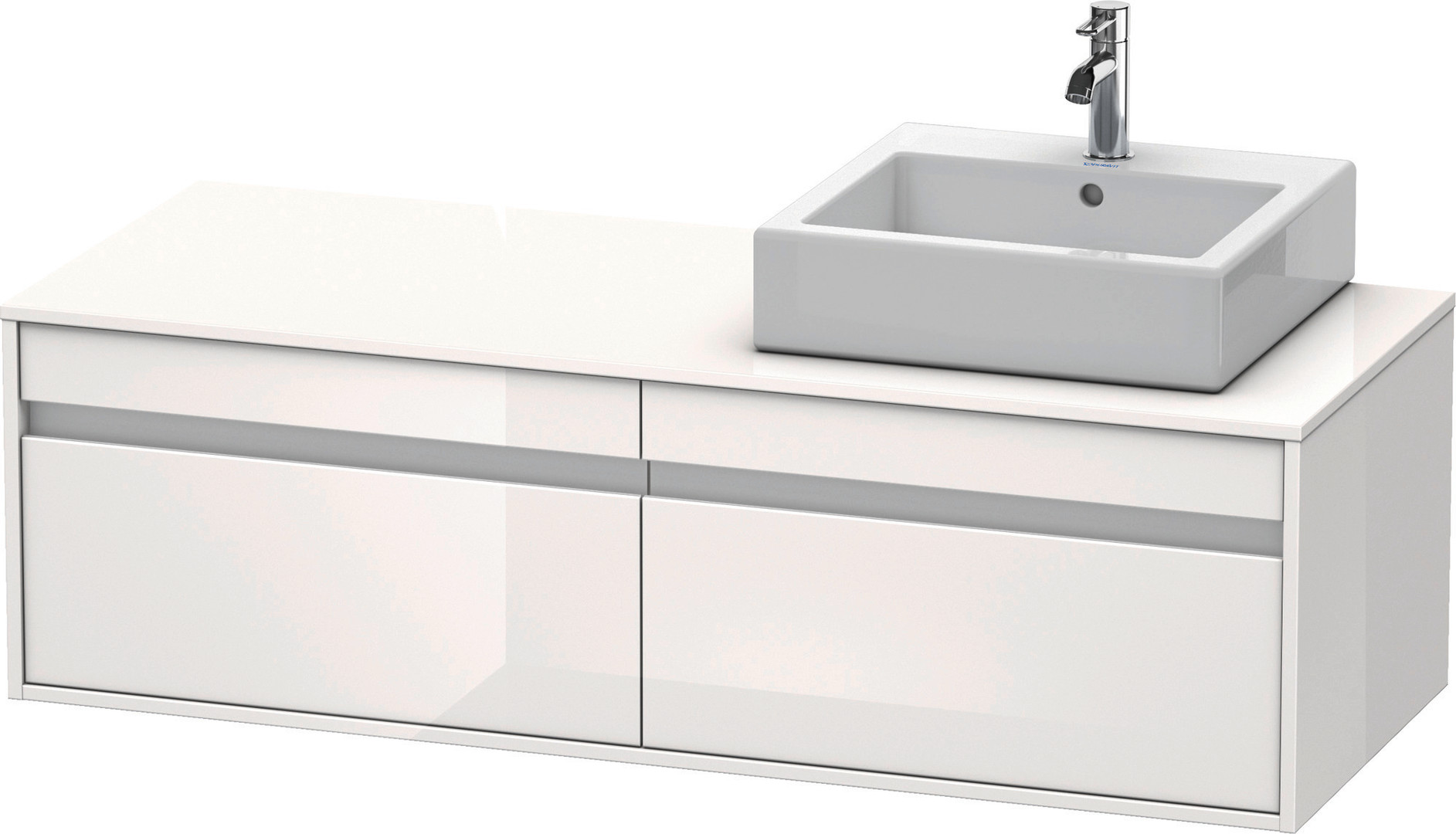 Duravit Waschtisch-Unterschrank Ketho 140x55x42,6cm, für Aufsatzbecken, 2 Auszüge, Becken rechts, weiß hochglanz
