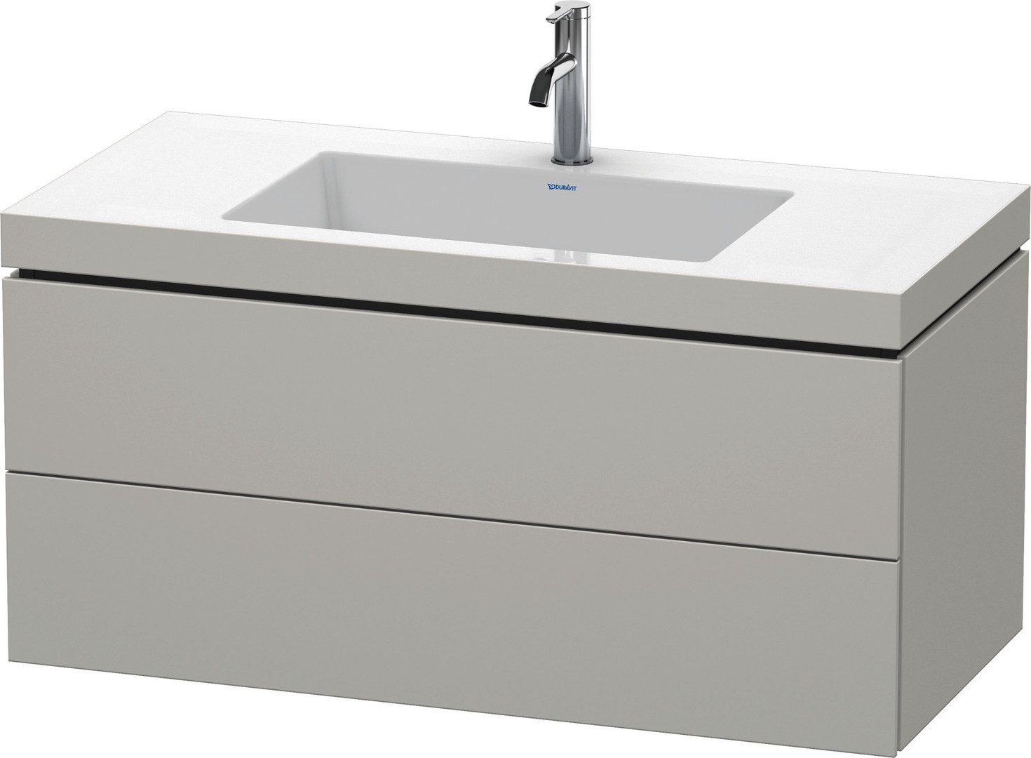Duravit Waschtisch-Unterschrank c-bonded L-Cube 100 x 48 cm, 1 Hahnloch, betongrau matt, 2 Schubkästen, wandhängend