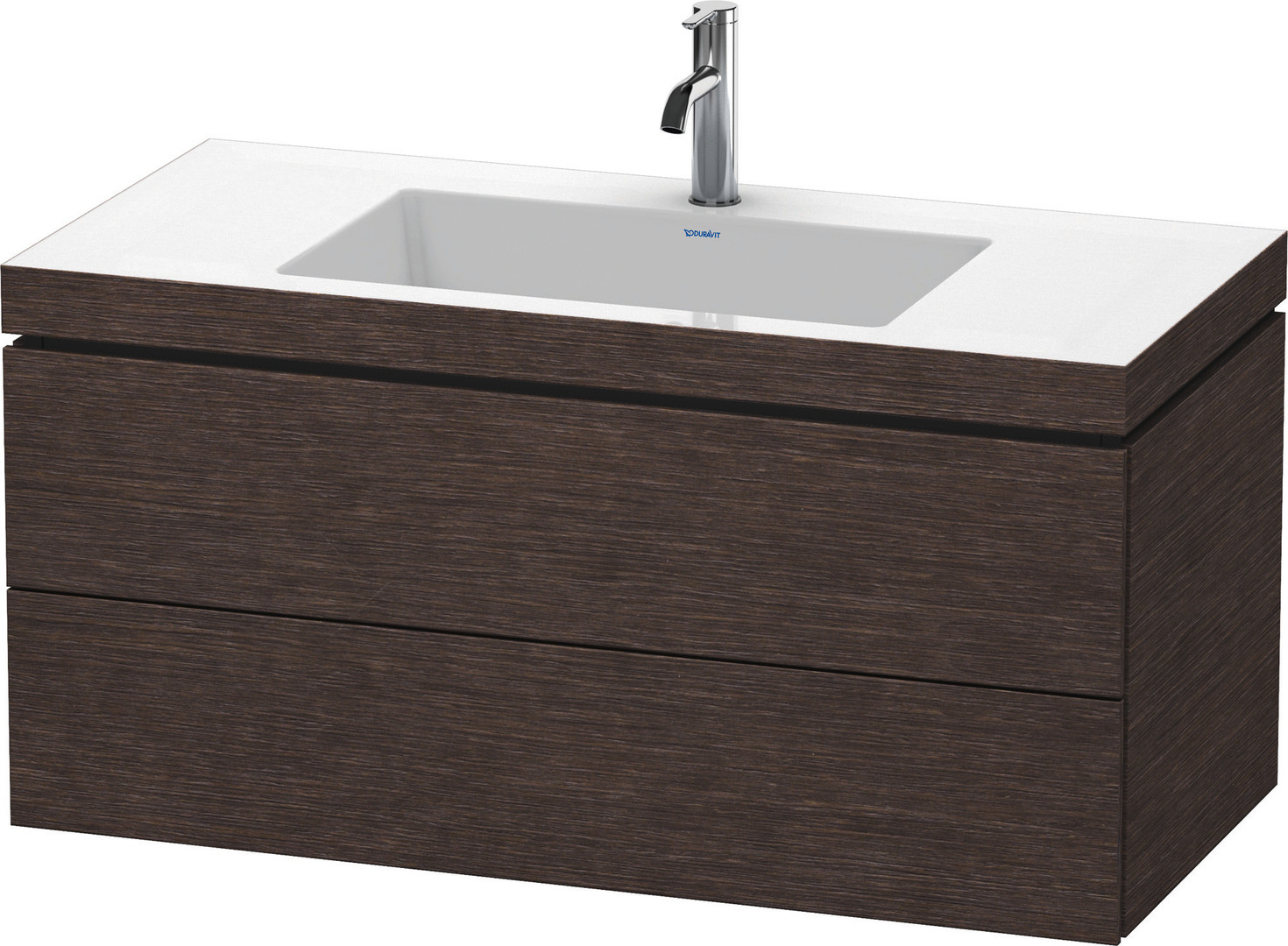 Duravit Waschtisch-Unterschrank c-bonded L-Cube 100 x 48 cm, 1 Hahnloch, eiche dunkel gebürstet, 2 Schubkästen, wandhängend