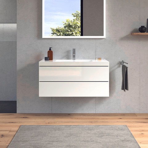 Duravit Waschtisch-Unterschrank c-bonded L-Cube 100 x 48 cm, 1 Hahnloch, weiß hochglanz, 2 Schubkästen, wandhängend