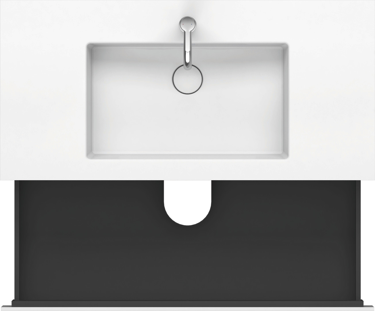 Höhe 50 cm, oberer Schubkasten mit Siphonausschnitt und Schürze, mit Möbelwaschtisch Vero Air, ohne Überlauf, mit Hahnlochbank, mit Schaftventil mit keramischer Ventilabdeckhaube, mit Raumsparsiphon