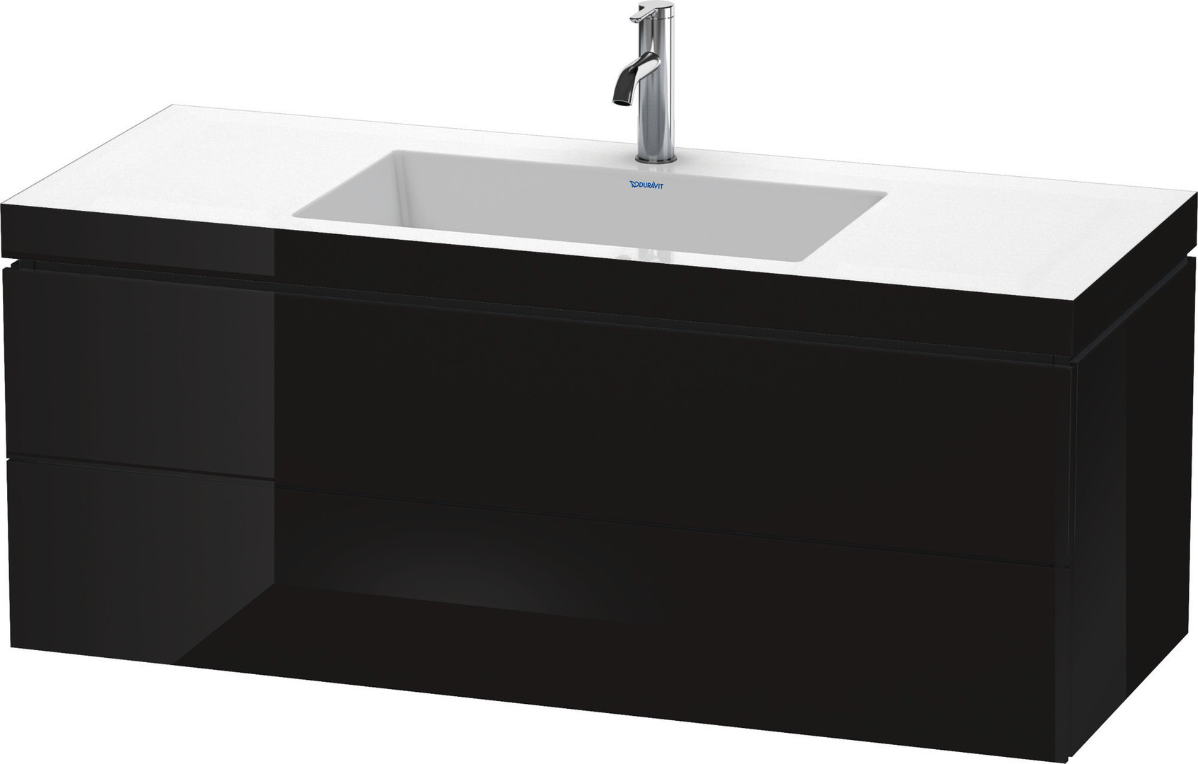 Duravit Waschtisch-Unterschrank c-bonded L-Cube 120 x 48 cm, 1 Hahnloch, schwarz hochglanz, 2 Schubkästen, wandhängend