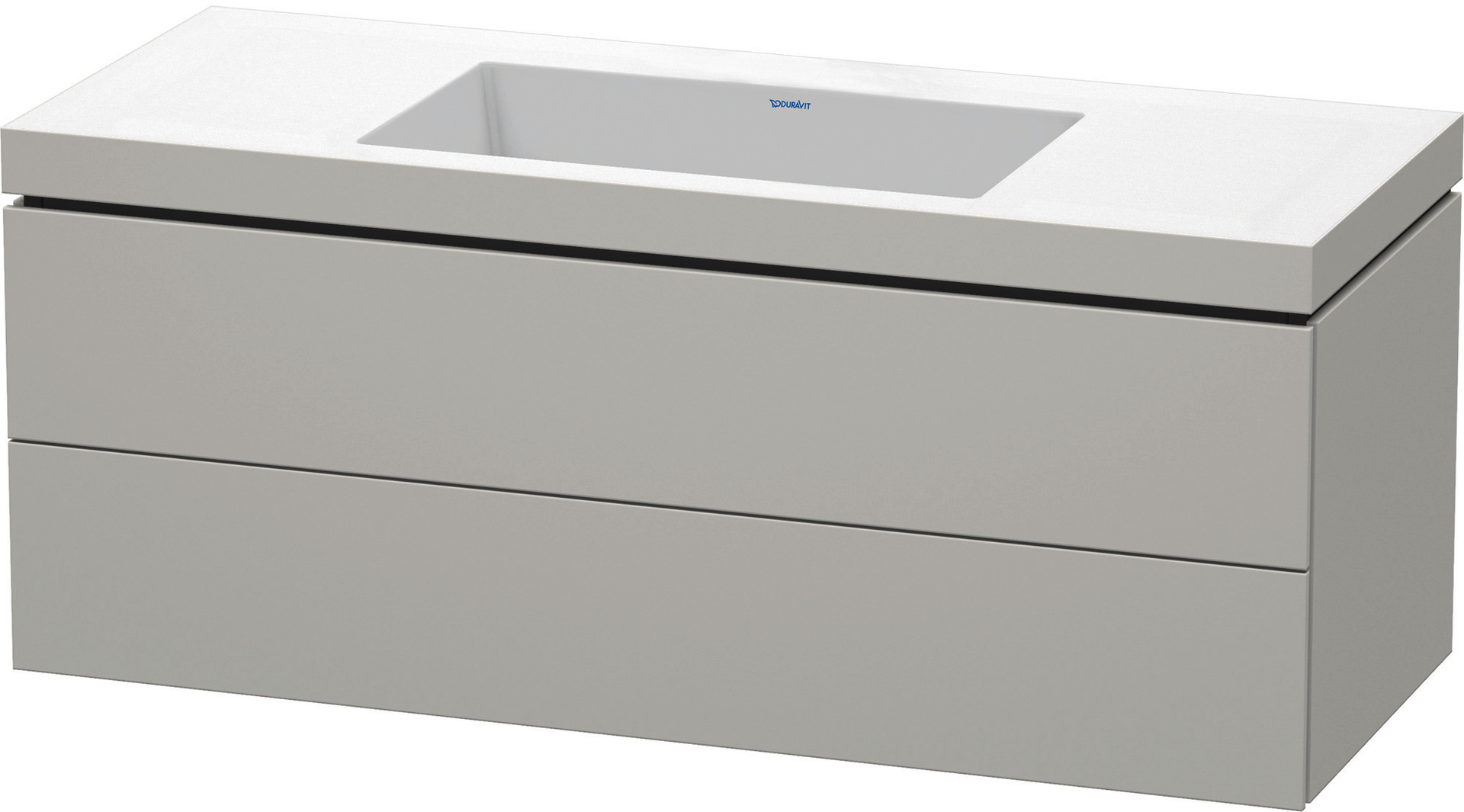 Duravit Waschtisch-Unterschrank c-bonded L-Cube 120 x 48 cm, ohne Hahnloch, betongrau matt, 2 Schubkästen, wandhängend