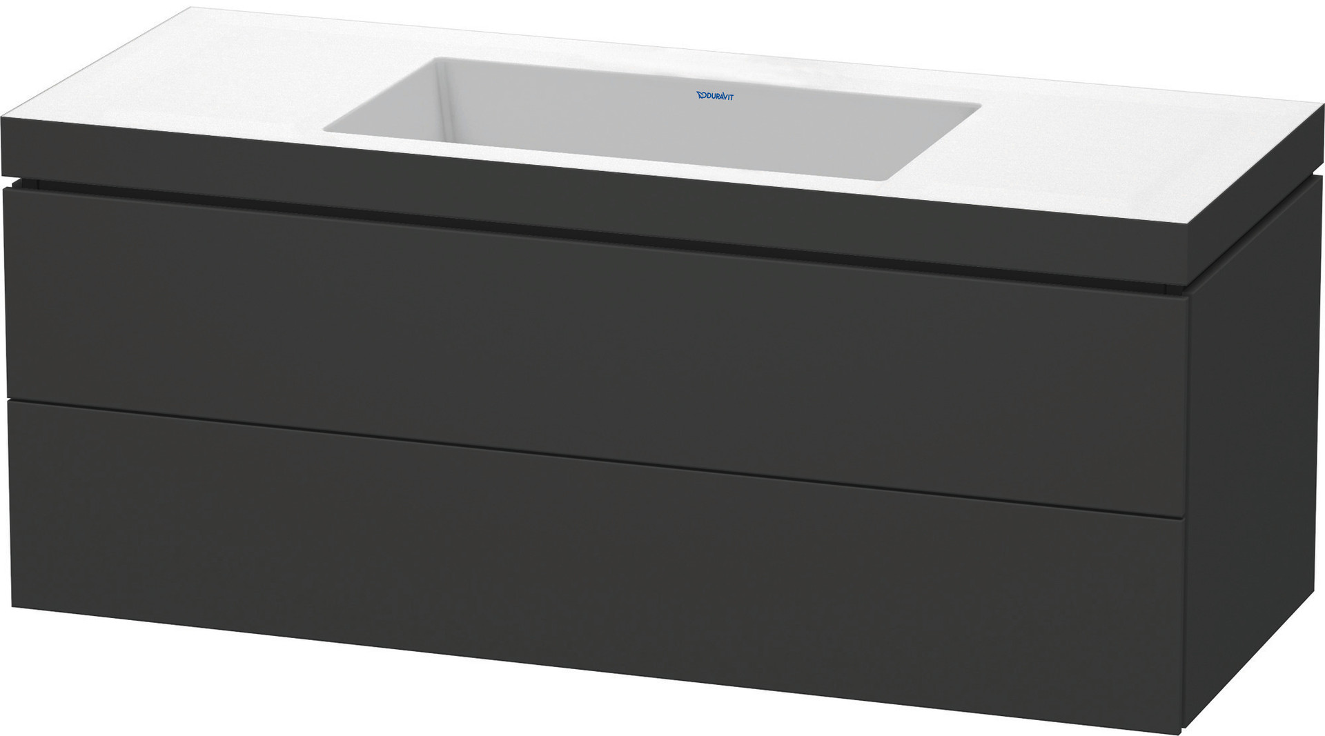Duravit Waschtisch-Unterschrank c-bonded L-Cube 120 x 48 cm, ohne Hahnloch, graphit matt, 2 Schubkästen, wandhängend