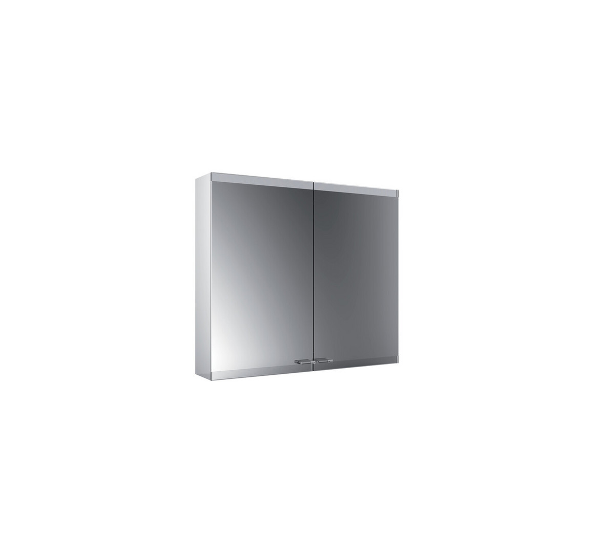 EMCO Aufputz-Lichtspiegelschrank evo 800x700mm, 2-türig, aluminium, ohne lightsystem, ohne Spiegelheizung