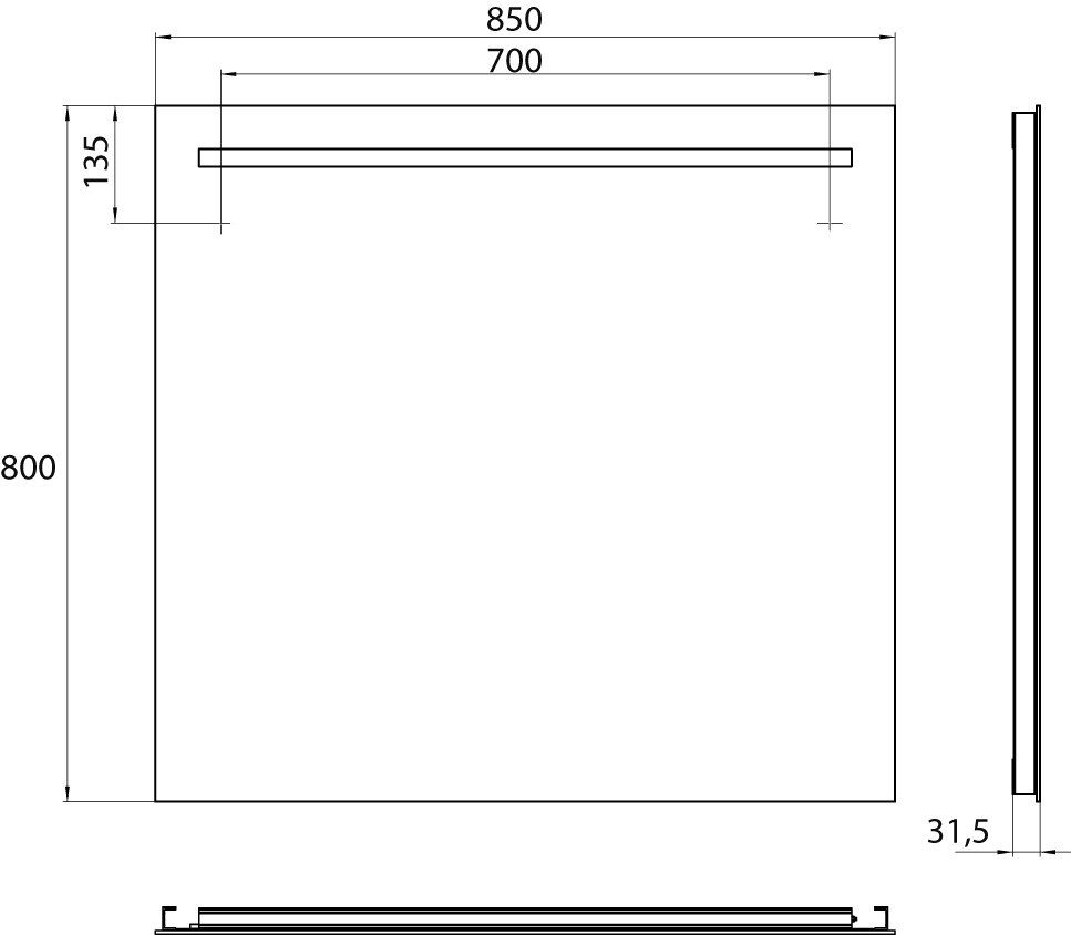 EMCO LED-Lichtspiegel MI 100 850 x 800 mm, Raumschaltung, Lichtausschnitt horizontal EC449810003