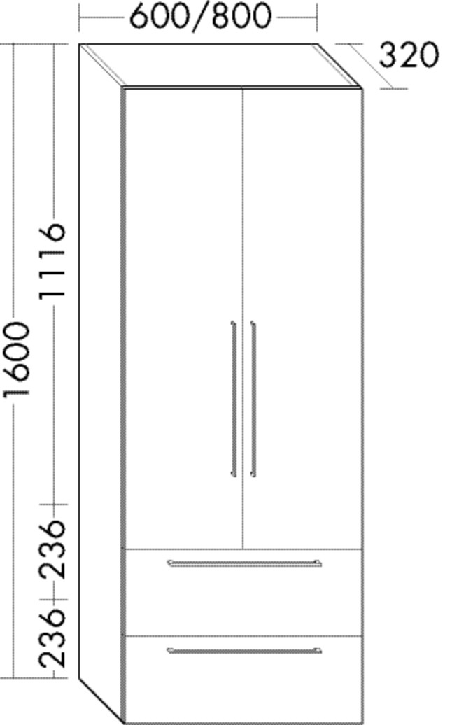 FORMAT Design Hochschrank HSOT060 600x1600x320mm, 2 Türen, weiß Hochglanz FO18100010001