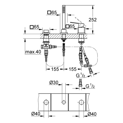 GROHE 3-Loch-Wannenkombination Eurocube ohne Auslauf, chrom