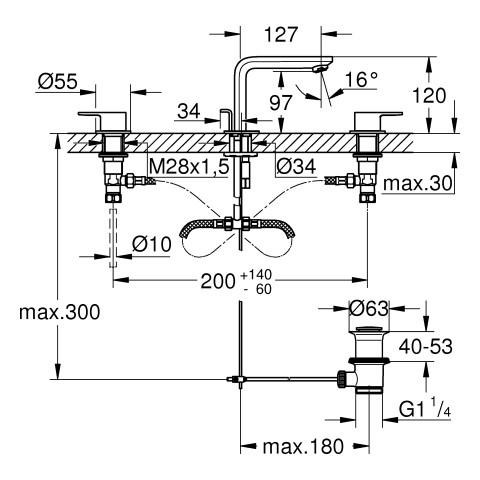 GROHE 3-Loch-Waschtischarmatur Lineare 1/2", Zugstangen-Ablaufgarnitur, chrom