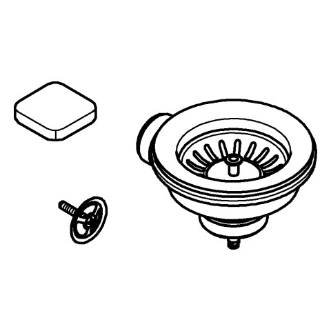 bestehend aus Rahmen für Überlauf, Ablaufgarnitur, Sieb, Kappe, Abdeckung quadratisch, passend für folgende Küchenspülen 31 656, 31 650