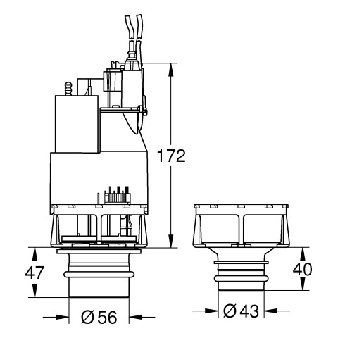 GROHE Ablaufventil-Dual Flush 42265, für Spülkasten 0,82 m, pneumatische Betätigung, für 6 l oder 3 l, mit Ventilsitz