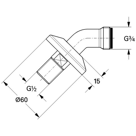 GROHE Anschlusswinkel 12110, 1/2'' x 3/4'', Außengewinde 1/2'' x 3/4'', Schubrosette, für Vertica-Batterien, chrom