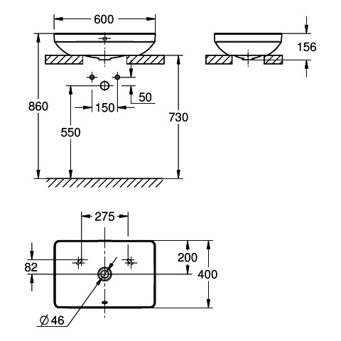 GROHE Aufsatz-Schale Euro Keramik 60x40cm, ohne Hahnloch, mit Überlauf, alpinweiß
