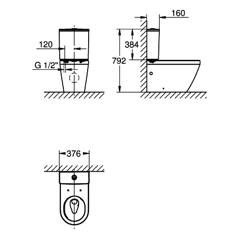 GROHE Aufsatzspülkasten Euro Keramik Anschluss von unten, alpinweiß