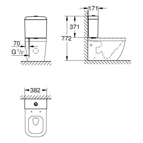 GROHE Aufsatzspülkasten Euro Keramik Zulauf und Ablauf verdeckt, Anschluss von unten, alpinweiß