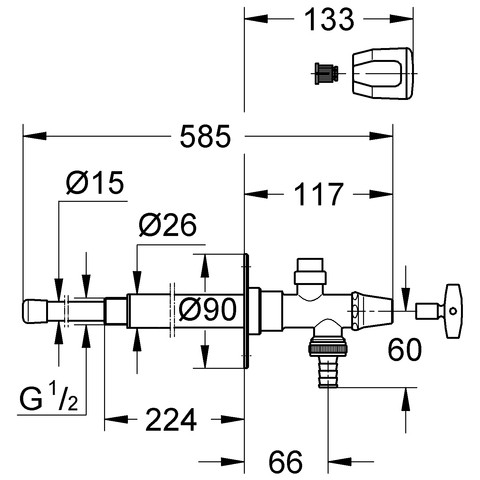 frostsicher durch automatische Entleerung bei jedem Schließvorgang, Steckschlüssel- und Sanitärgriff, Ventilsitz aus Rotguss, Rückflussverhinderer Typ EB, Einbautiefe größer gleich 26 cm, CU-Anschluss 1,5 cm und AG 1/2", Durchgangsbohrung 2,6 cm, eigensicher gegen Rückfließen, kombinierbar mit Rohrbelüfter Bauform HB 41 239 000