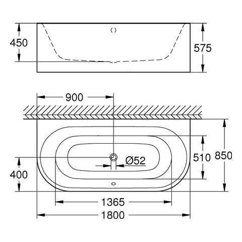 GROHE Badewanne Essence 180 x 57,5 x 85 cm, Vorwand, mit Überlauf, alpinweiß